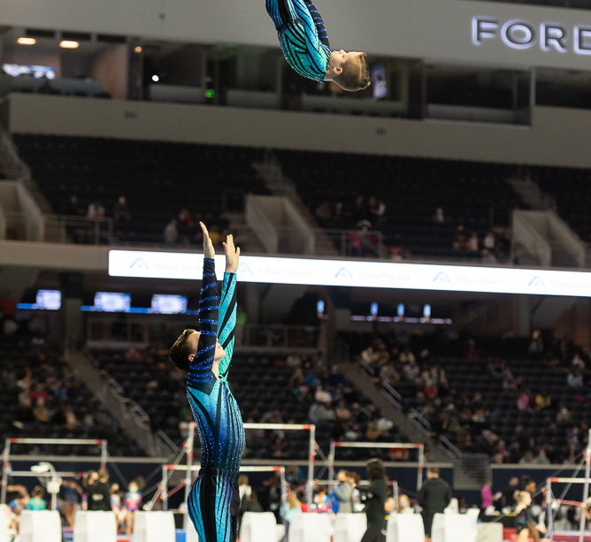 Discover Acrobatic Gymnastics: A captivating partnership sport where athletes perform in pairs, trios, or quads. It features two skill types: Balance and Dynamic, with balance complementing the dynamic elements. Acro introduces the artistry of dance, balance, strength, and aerial awareness, seamlessly weaving in elements of tumbling, flexibility, and agility. Join our team to hone your partnership skills and elevate your acrobatic journey.